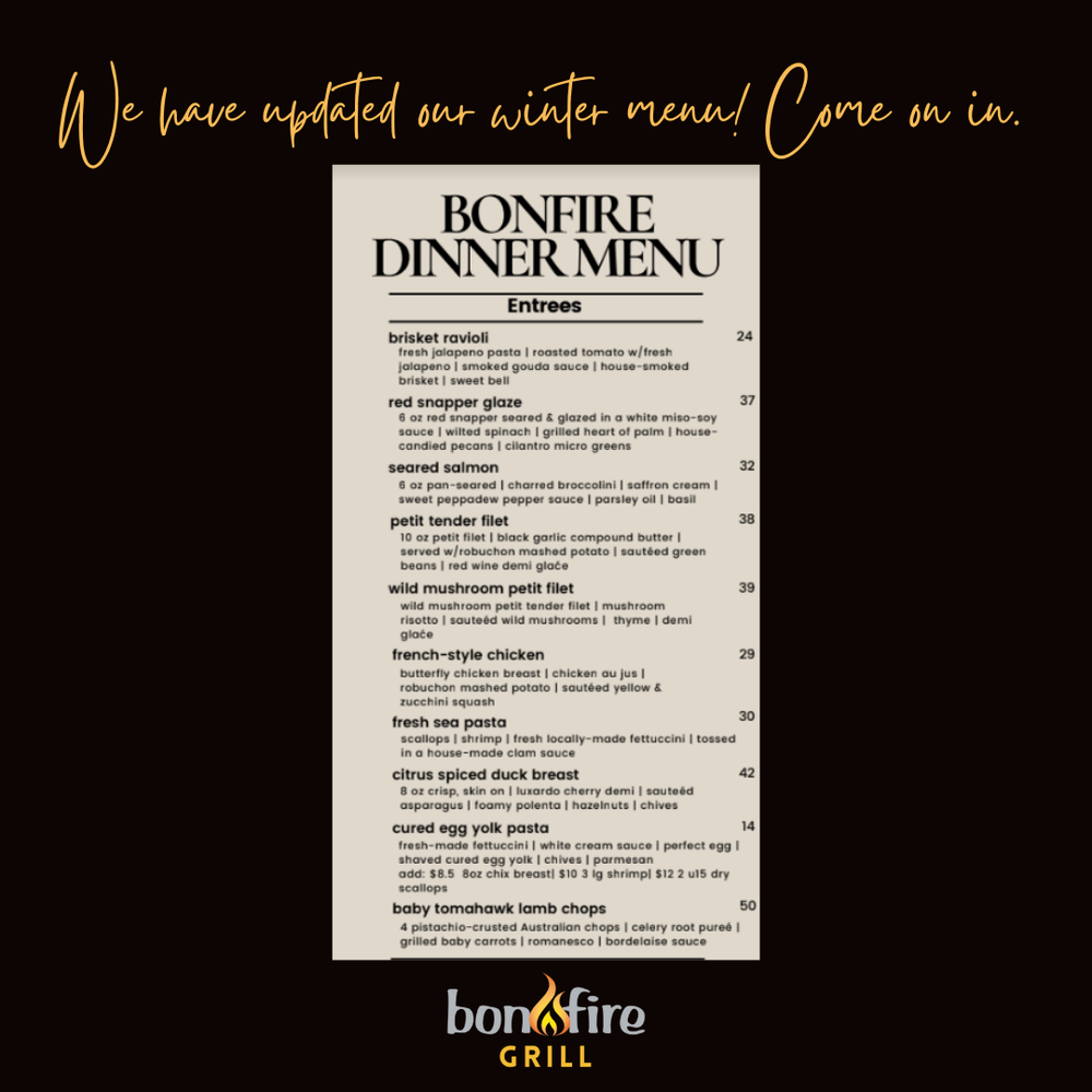 Bonfire Grill offers a New American dining experience in Tomball, TX with a range of unique dishes. From Avocado Toast to Shrimp & Grits, their menu caters to all tastes, including options for breakfast, sweet breads, and pizzas. The restaurant prides itself on being intimate, romantic, and upscale, making it a perfect spot for a special meal or casual dining. With features like outdoor seating, a full bar, and happy hour specials, Bonfire Grill ensures a memorable dining experience. The diverse menu, including gluten-free and vegetarian options, showcases the chef's creativity and expertise. Whether you're looking for a cozy breakfast or a gourmet dinner, Bonfire Grill aims to please with flavorful dishes and excellent service. Don't miss out on this hidden gem in Tomball, TX.